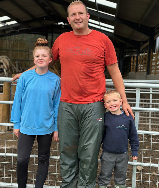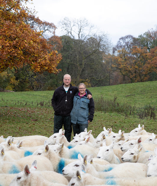 Sadie and Nick Edmondson farm just up the road from us on Nick's family farm. Nick and his father run British Simmental cattle and Texel Cross sheep. Their wool is used in our Coniston Tweed.